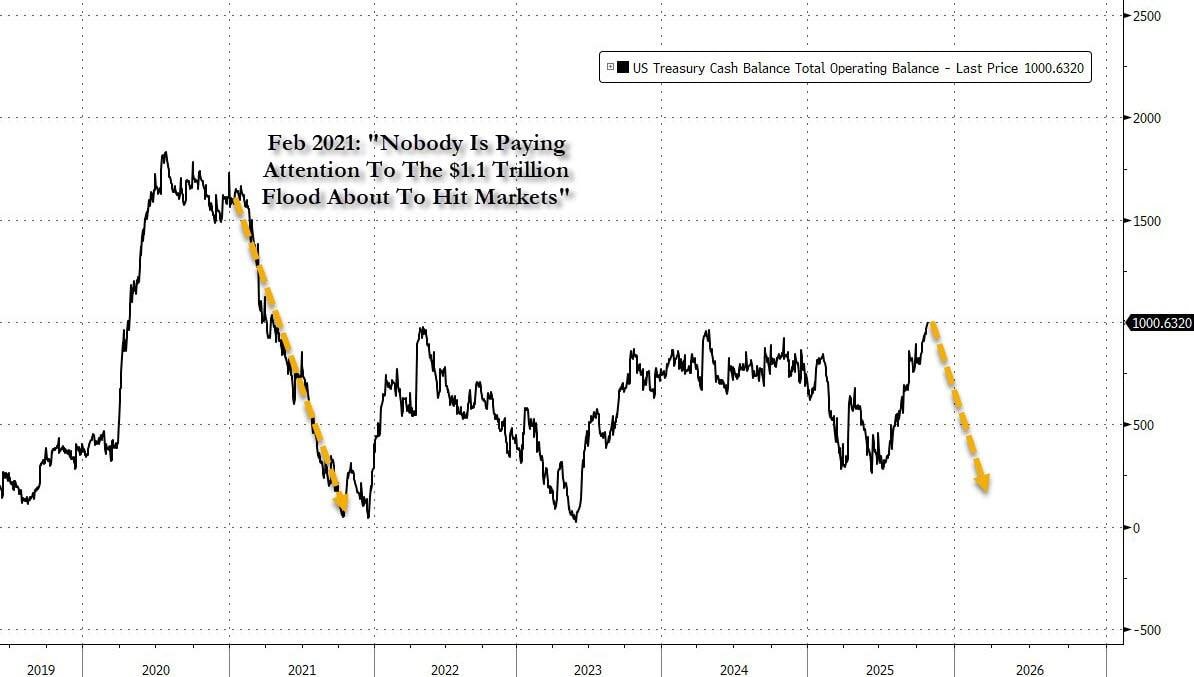 El Tesoro mantiene más de USD 1 billón inmovilizado en su cuenta (TGA) debido al prolongado shutdown, cifra que aumentó desde USD 300.000 millones hace apenas tres meses.